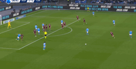 第7分钟,斯皮纳佐拉助攻,桑托斯内切低射近角破门,那不勒斯1-0都灵